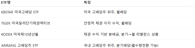 3. 추천 월배당 ETF 리스트 (2025년 기준)